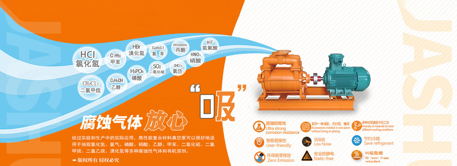 公司獨(dú)立研發(fā)的具有自主知識產(chǎn)權(quán)的多項(xiàng)專利產(chǎn)品 一耐腐蝕系列水環(huán)式真空泵。